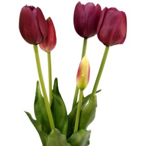 Wykonany z trwałego gumowanego materiału PU do złudzenia przypominającego bukiet żywych tulipanów, będzie zdobił Twoje wnętrza przez wiele lat.
