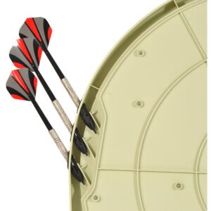 - duże rozmiary tarczy i kontrastowe kolory pomagą w rzutach do celu, zabezpieczą ściany przed ewentualnym uszkodzeniem
