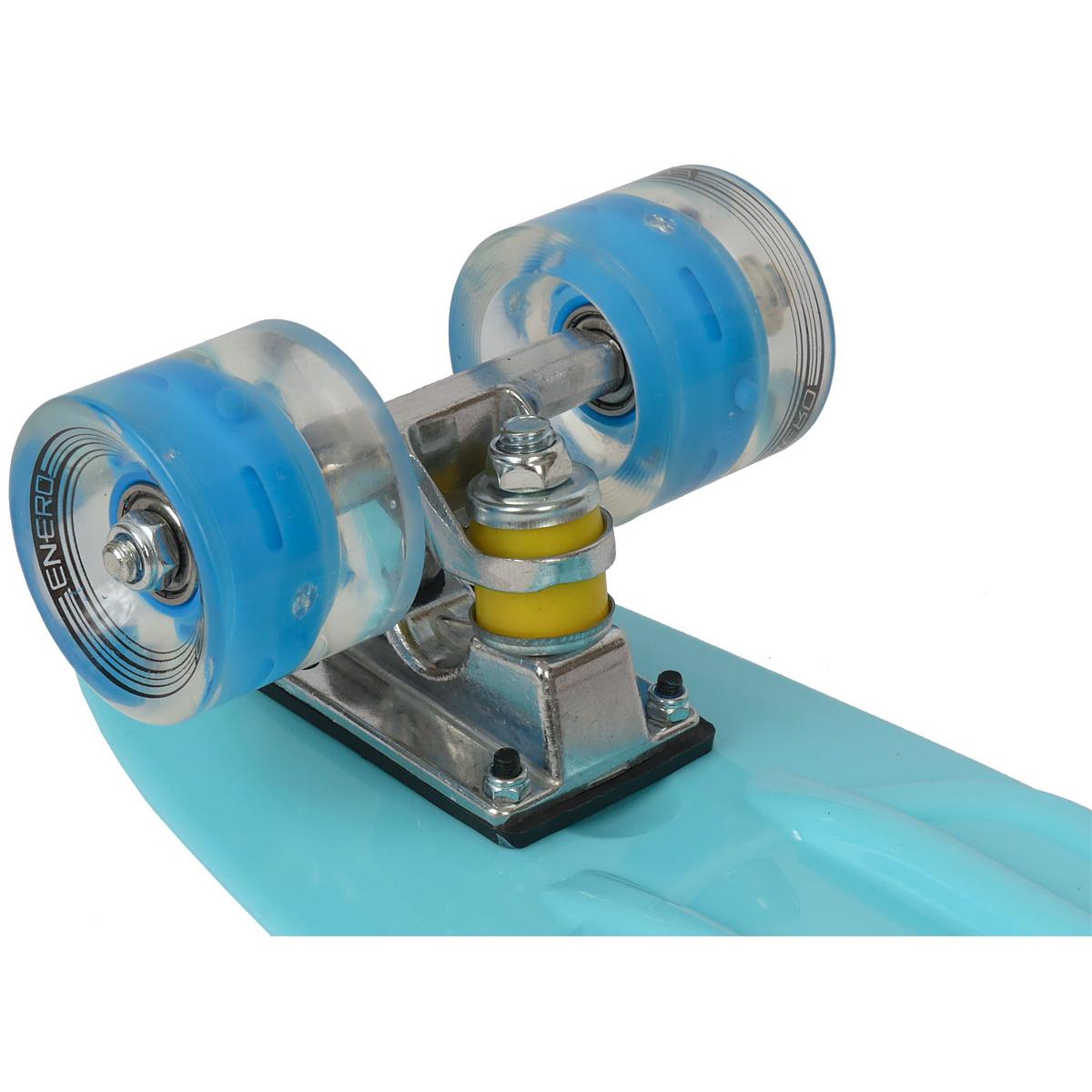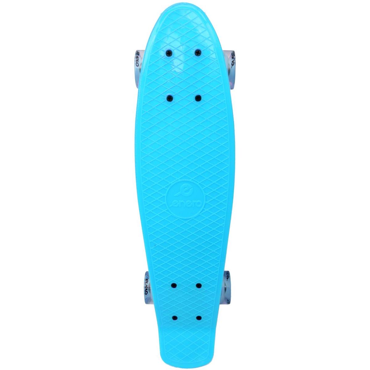 Deskorolka ENERO to bardzo dobry wybór. Deck wykonany z bardzo trwałego tworzywa sztucznego zapewni dużą wytrzymałość przy stosunkowo niewielkiej wadze. Górna antypoślizgowa powierzchnia zagwarantuje Twojemu dziecku dobrą przyczepność i stabilność, dzięki czemu nie straci kontroli podczas jazdy. Poliuretanowe miękkie kółka o twardości 82 A doskonale wyrównają nierówności podłoża, dobrze stłumią dźwięki i drgania, zapewnią bardzo dobre warunki do jazdy. Łożyska ABEC 7 pozwolą na płynną i szybką jazdę. Niewielkie rozmiary oraz waga pozwoli Twojemu dziecku na łatwe przechowywanie i transportowanie produktu. A świecące kółka z lampkami LED, nie tylko zwiększą widoczność i bezpieczeństwo Twojego dziecka ale też sprawią wielka frajdę podczas jazdy. Nie zwlekaj z zakupem, dołącz do grona szczęśliwych rodziców zadowolonych dzieci!