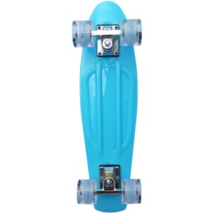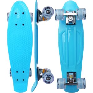 Jazda na deskorolce to sport indywidualny, który daje nie tylko frajdę, ale też poprawia sprawność fizyczną, pobudzając wszystkie mięśnie. Pozwala również, ćwiczyć wytrwałość i cierpliwość. DESKOROLKA ENERO NIEBIESKA LED idealnie posłuży do rozpoczęcia przygody z tym rodzajem sportu oraz do nauki podstawowych trików. Potocznie tego rodzaju deskorolki nazywane są fiszkami. Ich nazwa pochodzi od angielskiego słowa „fish” oznaczającego rybę, z uwagi na ich charakterystyczny kształt i znane są na całym świecie