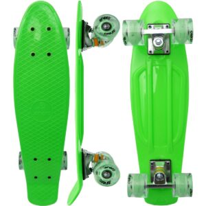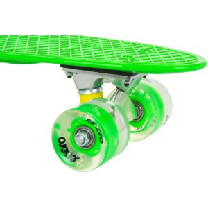 Jazda na deskorolce to sport indywidualny, który daje nie tylko frajdę, ale też poprawia sprawność fizyczną, pobudzając wszystkie mięśnie. Pozwala również, ćwiczyć wytrwałość i cierpliwość. DESKOROLKA ENERO ZIELONA LED idealnie posłuży do rozpoczęcia przygody z tym rodzajem sportu oraz do nauki podstawowych trików. Potocznie tego rodzaju deskorolki nazywane są fiszkami. Ich nazwa pochodzi od angielskiego słowa „fish” oznaczającego rybę, z uwagi na ich charakterystyczny kształt i znane są na całym świecie