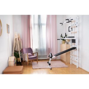 DRABINKA GIMNASTYCZNA DREWNIANO METALOWA Z DRĄŻKIEM, ŁAWKĄ I AKCESORIAMI BENCHK 233W