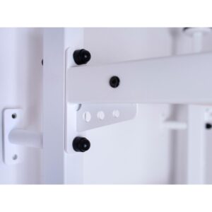Wielofunkcyjna drabinka gimnastyczna została wykonana z metalowych profili (50 mm x 40 mm) oraz drewnianych bukowych olejowanych ręcznie szczebelków. Jej atutem jest możliwość montowania rozporowego (bez wiercenia w ścianie). Jednolite pionowe profile boczne zostały pomalowane proszkowo na biało. Drabinka zaprojektowana została tak, aby nie tylko urozmaicić wystrój pokoju, ale stać się także jego niezbędnym dodatkiem.