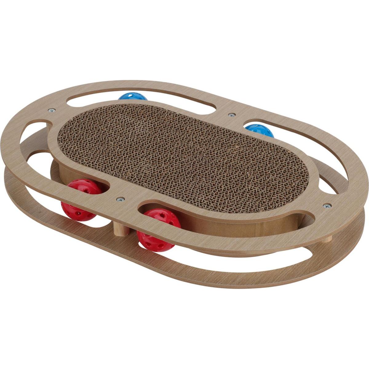 Wszystkie koty uwielbiają buszowanie, czy to w ogrodzie, czy w mieszkaniu. Napotykają liczne bodźce z otoczenia i ich inteligencja jest wówczas stymulowana na wielu poziomach. Zbyt mała stymulacja, wpływa negatywnie na ogólne samopoczucie wszystkich czworonogów. Za pomocą interaktywnej zabawki – drapaka z dzwoniącymi piłeczkami zadbasz urozmaicenie aktywności, przypomni Twojemu pupilowi zabawę w polowanie.