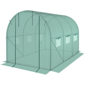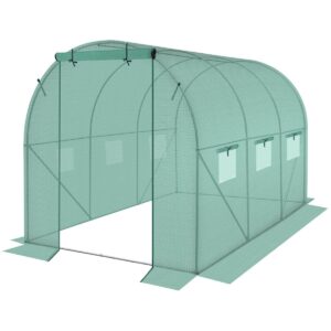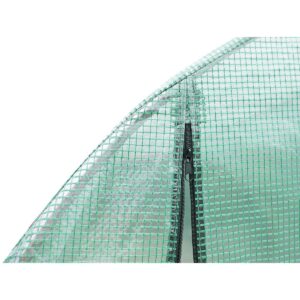 Folia posiada 6 okien z moskitierami i zasłonkami z folii, które chronią przed nadmiarem wilgoci zapewniając jednocześnie optymalny przepływ powietrza i odpowiedni dostęp do światła. Posiada szerokie na 120 cm drzwi zamykane na zamek, które pozwolą wygodnie wychodzić lub wchodzić do środka.