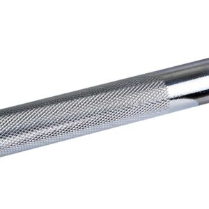 Antypoślizgowa (ryflowana) część chwytna o specjalnych nacięciach zwiększy Twoje bezpieczeństwo, pozwoli na szerszy rozstaw rąk, zapewni pewny i wygodny chwyt. Dzięki niej ryzyko wyślizgnięcia się sztangi z dłoni będzie minimalne. Gwintowane zaciski z gumową uszczelką precyzyjnie docisną talerze przez cały czas treningu, dzięki temu obciążenie rozłoży się równomiernie, a trening będzie efektywniejszy. Gwintowane końce pozwolą stabilnie osadzić sztangę na stojaku.
