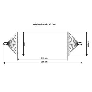 - Długość całkowita ok: 260 cm (materiał + sznurki + kijki) – naciągnięty