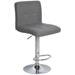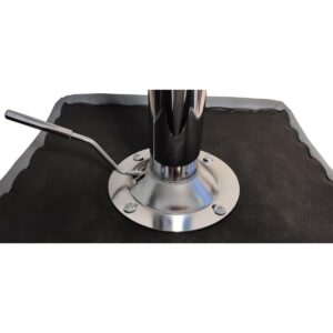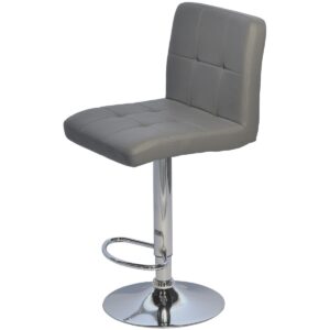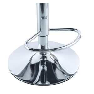 Krzesło wykonano z bardzo wytrzymałych materiałów. Stabilna, chromowana noga z podstawą (chromowaną) daje Ci bezpieczeństwo podczas siedzenia. Za pomocą specjalnego mechanizmu, w łatwy sposób wyregulujesz wysokość pomiędzy: 92-112 cm. Szerokie, idealnie wyprofilowane siedzisko jest w pełni obrotowe. To umożliwia sięganie rękoma po przedmioty bez potrzeby wstawania. Ponadto siedzisko stanowi doskonałe podparcie dla kręgosłupa. Chromowany stelaż posiada ergonomiczną podpórkę na nogi, która podnosi komfort siedzenia, oraz pomaga utrzymywać równowagę.