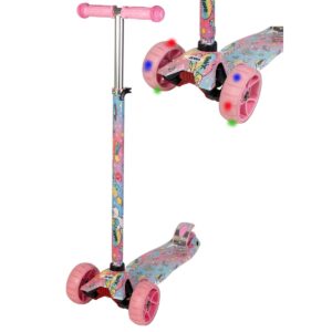 Hulajnoga 3 kołowa balansowa maxi unicorn Enero to świetny prezent dla Twojego dziecka. Odpowiednie rozmiary i trwałe dobre materiały zapewnią Mu świetną i bezpieczną zabawę. Oryginalny wzór w różowe jednorożce sprawi, że Twoje dziecko wyróżni się w przedszkolu, szkole, bądź na osiedlowym placu zabaw. Hulajnoga świetnie nada się dla Twojego dziecka na spacer, do zabawy z rówieśnikami czy jako środek transportu do szkoły / przedszkola. Trójkołowa konstrukcja przyspieszy naukę jazdy na tego rodzaju sprzęcie. Kolorowe świecące pod wpływem jazdy kółka nie tylko sprawią, że Twoje dziecko będzie widoczne na jezdni, ale też dadzą mu wielką frajdę. Dla większego bezpieczeństwa dokup kask i ochraniacze, które możesz dokupić na naszej stronie internetowej w równie ciekawych wzorach.