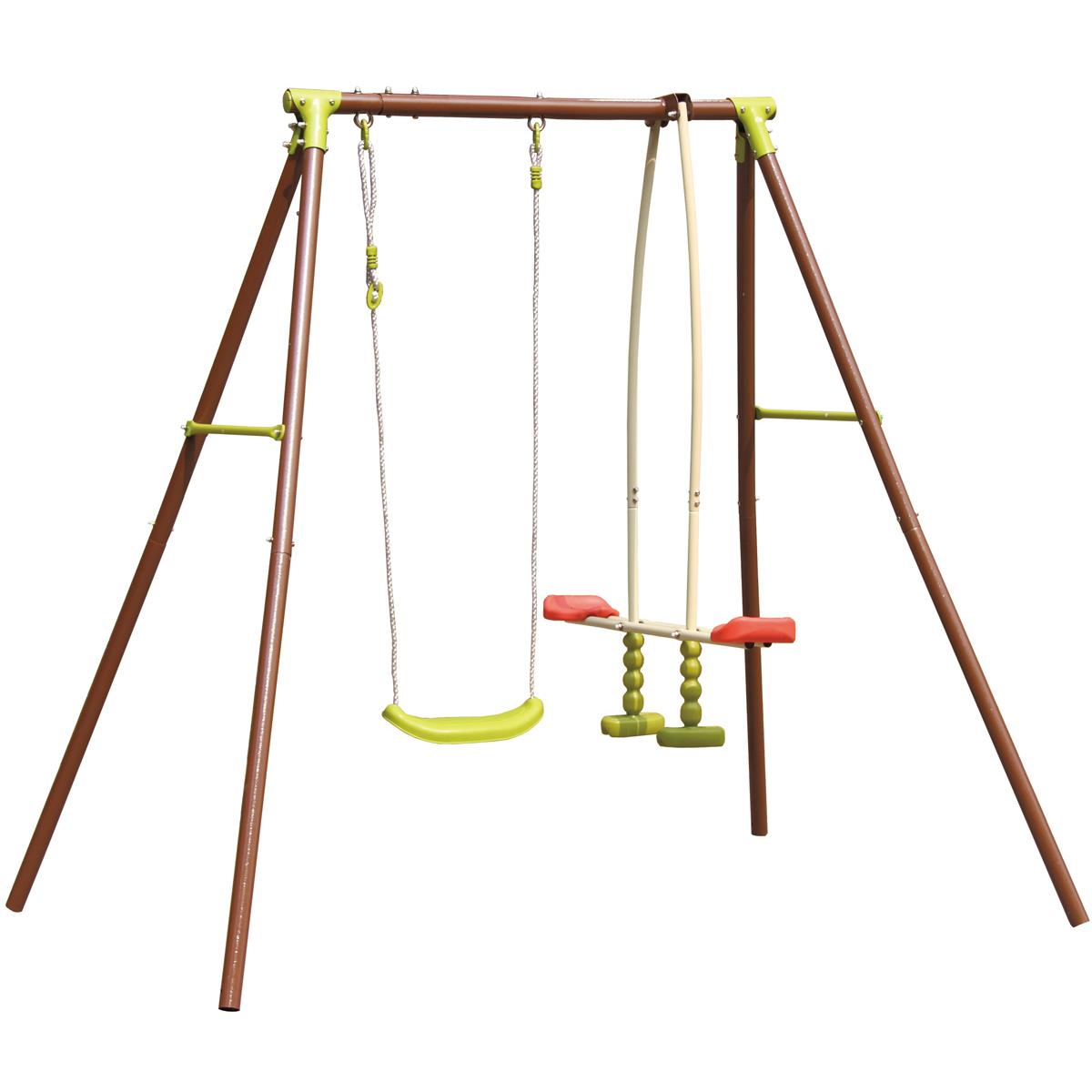 • komplet zawiera: konstrukcja z rur stalowych, siedzisko x 1, gondola podwójna x 1, komplet śrub montażowych, kotwy mocujące do podłoż