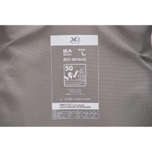 Kamizelka została zaprojektowana i wykonana zgodnie z normami: 50N EN ISO 12402-5:2020, co oznacza, że spełnia wszelkie wymogi stawiane kamizelkom asekuracyjnym i jest o wyporności nie mniejszej niż 50N.
