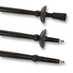 Dzięki dodatkowym końcówkom w kształcie parasola, nawet zimą, na oblodzonej powierzchni, masz zagwarantowaną stabilność. Wykonane są z materiału odpornego na uszkodzenia i sprawdzą się na długich trasach. Końcówki „parasolki” – zapobiegną zbyt głębokiemu wbijaniu się kijków w miękkie, grząskie podłoża np. błoto, śnieg czy piasek.