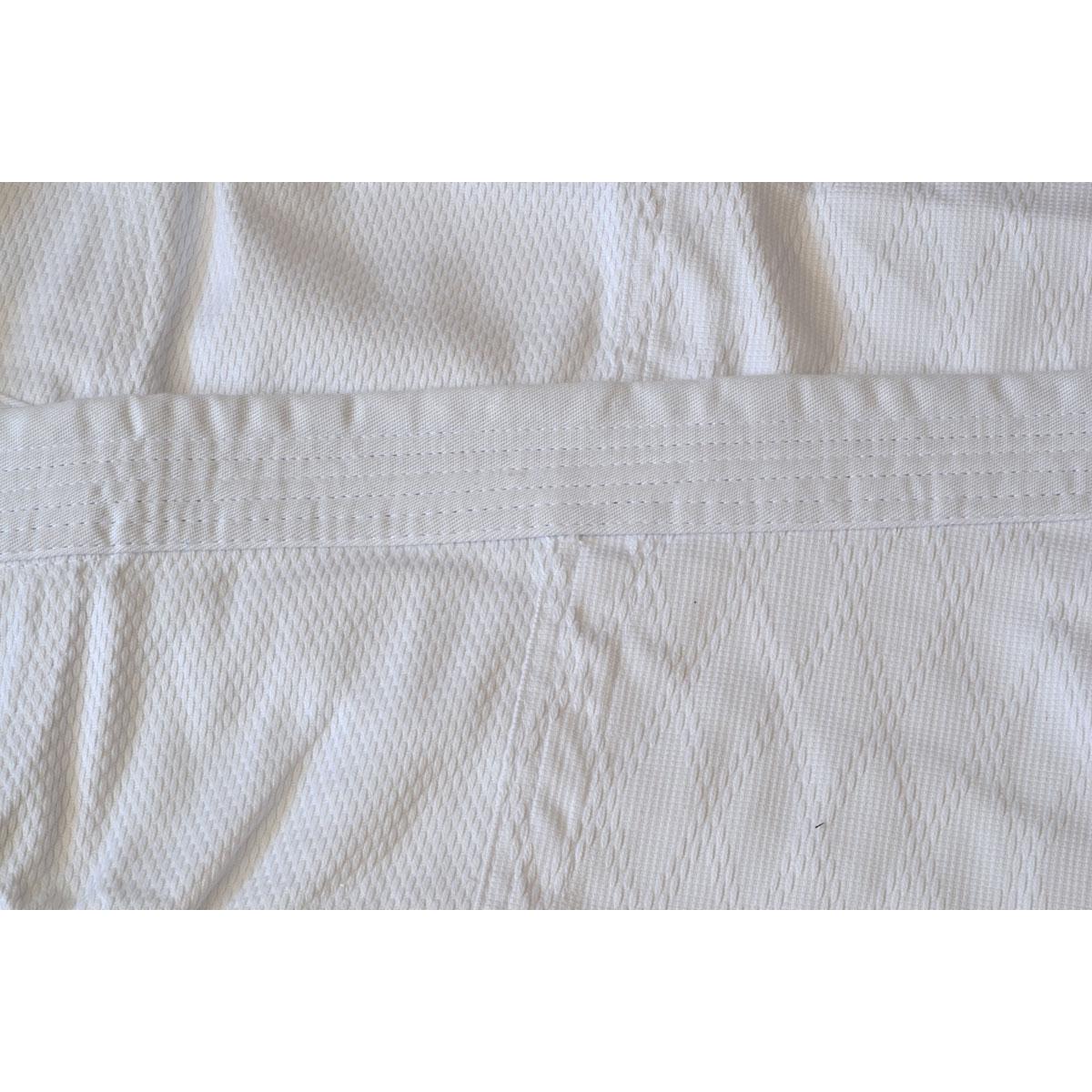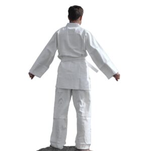 Klasyczne białe kimono Judo wyróżnia się trwałością i odpornością na uszkodzenia. Strój uszyto w 100% z bawełny w oparciu o tradycyjny, uniwersalny fason. Bluza ma wzmocniony kołnierzyk, spodnie są na gumce i posiadają biały pas. Zyskujesz wygodę i idealne dopasowanie.