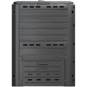 Zamknięta forma i zabezpieczenie w formie przykrywek ograniczy dostęp wszelkich zwierząt do zebranych odpadów, a otwory zapewnią dopływ niezbędnego powietrza. Dolna uchylana zasuwa, ułatwi dostęp do wyprodukowanego kompostu w każdym momencie, nawet gdy jest na dnie zbiornika, a specjalna rączka blokująca klapę, umożliwi wygodne wrzucenie odpadów do środka! Jest lekki i wytrzymały na zmienne warunki atmosferyczne, będzie Ci służył przez wiele lat.