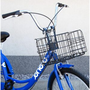 Koszyk wykonany z metalu pokryty czarna farbą. Dzięki sprężynom jego złożenie i rozłożenie jest bardzo proste. Wystarczy zwolnić blokadę a koszyk automatycznie się otworzy. Koszyk po złożeniu będzie zajmował bardzo mało miejsca i będzie łatwy do przechowywania.