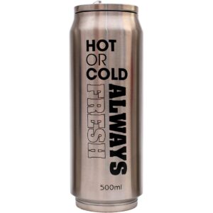 Kubek – puszka oferuje optymalną pojemność, bo aż 500 ml na kawę, herbatę, zimną wodę czy sok. Idealnie nadaje się do zabrania go ze sobą na piknik, długi spacer, a nawet do pracy. Dzięki niej możesz mieć przy sobie swój ulubiony napój bez względu na to, gdzie jesteś przez dłuższy czas.
