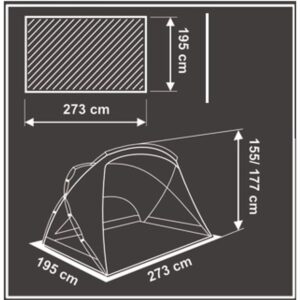 - Wymiary zewnętrzne po rozłożeniu ok.: 273 x 195 x 155-177 cm (szer. x gł. x wys.)