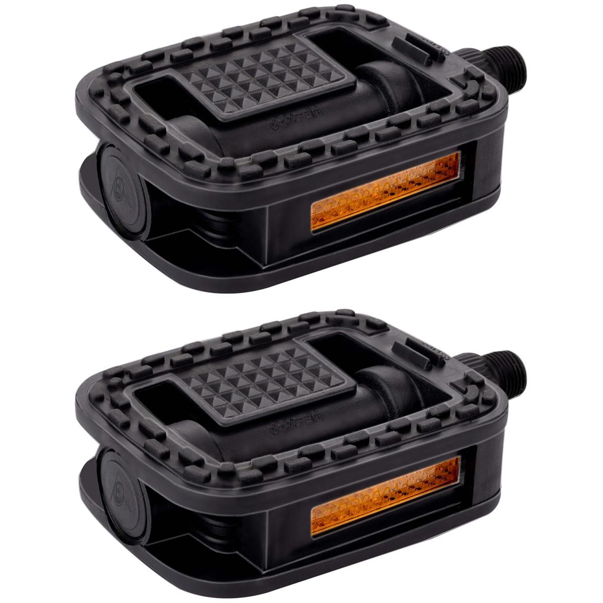 Dzięki szerokiej i antypoślizgowej powierzchni jazda na rowerze będzie bezpieczna i bardziej przyjemna. Zapewni stabilne ułożenie stopy, co przełoży się na wysoki komfort jazdy. Odblaski umieszczone w pedałach zapewnią dodatkowe zabezpieczenie podczas jazdy po zmroku.