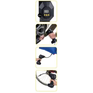 Pompka posiada wyświetlacz LCD i wbudowany manometr, wskazujący ciśnienie w trzech różnych skalach PSI, KPa i BAR oraz diodę LED podświetlającą obszar roboczy po zmierzchu.
