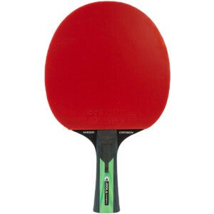 Wyczynowa rakieta MEGA CARBON z gumami JOOLA UPP 2,0 mm (zatwierdzone przez ITTF) wyposażona w innowacyjne technologie zwiększa celność przy niskim poziomie wibracji i zapewnia wiele technik strzału i jest idealna do szybkiej i ofensywnej gry.