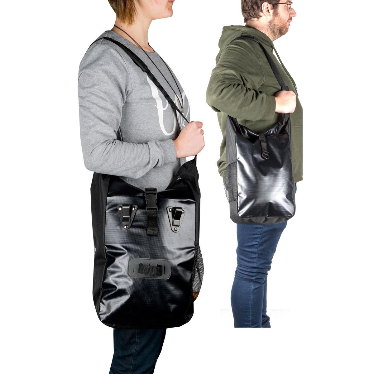 - dołączony pasek na ramię pozwoli zamienić torbę rowerową na torbę podręczną