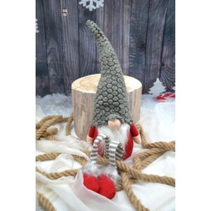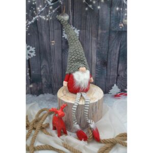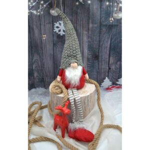 Skrzat gnom dekoracyjny z szarą futrzaną czapką 50+25cm