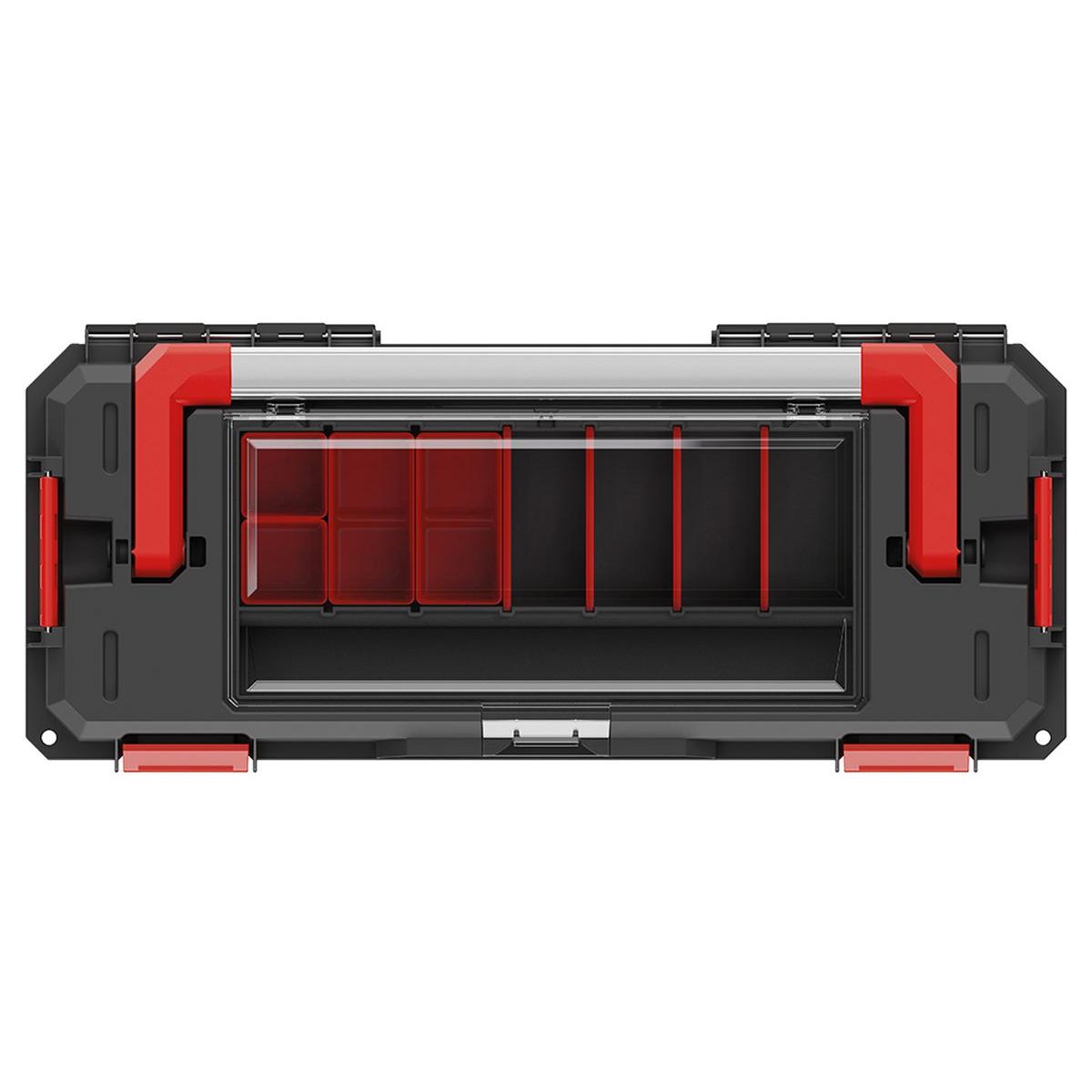 Skrzynka posiada duży i ergonomiczny uchwyt, wykonany z aluminium, która utrzyma podstawowe narzędzia i drobne elementy o wadze do 30 kg.