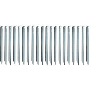 Zestaw składa się z 20 metalowych śledzi wyposażonych w specjalny uchwyt ułatwiający wbijanie w podłoże.