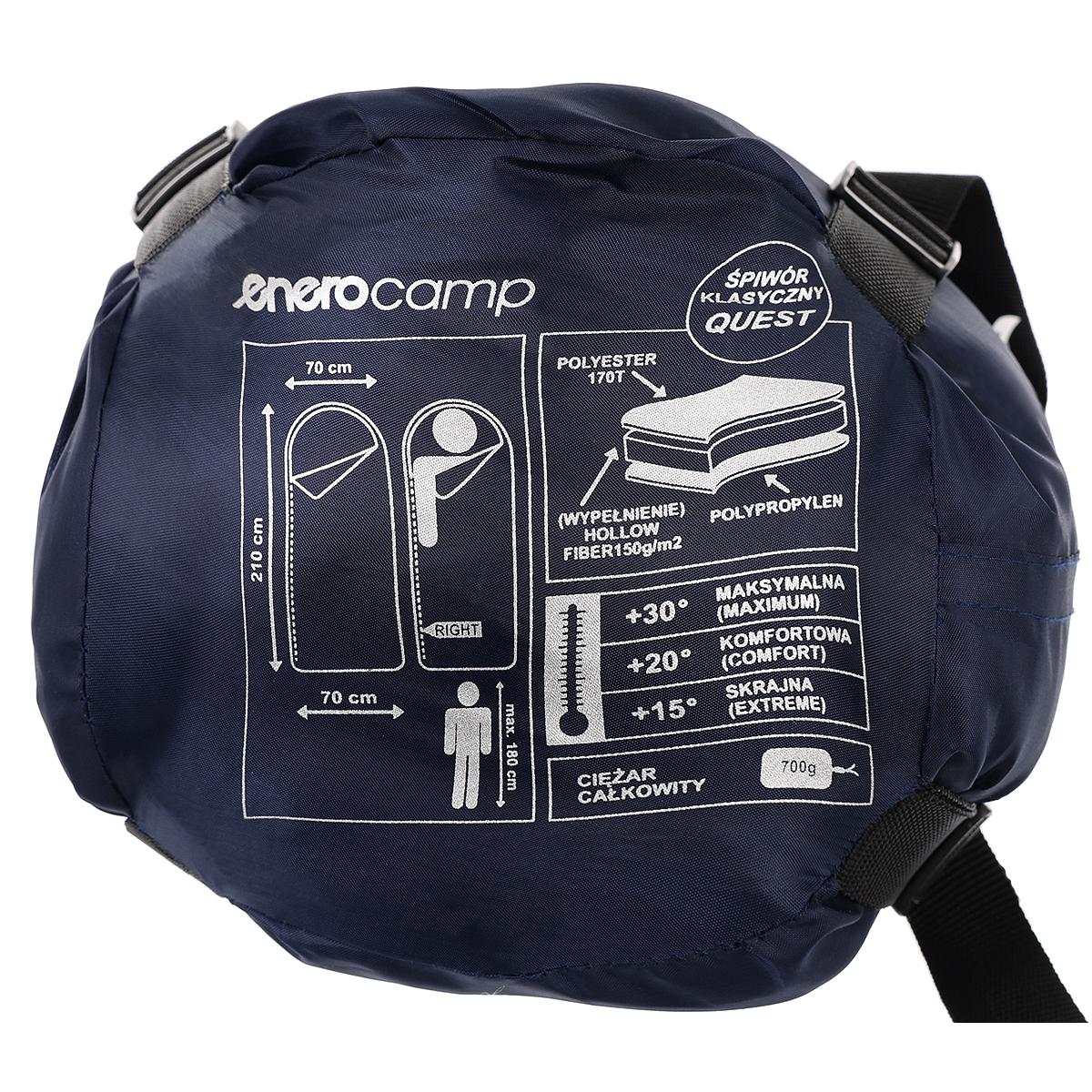 Śpiwór QUEST to praktyczny klasyczny śpiwór łączący w sobie zalety kołdry i śpiwora. Idealnie sprawdzi się na wycieczkach szkolnych, campingach, obozach jak i pod namiotem. Wypełnienie nie chłonie wilgoci, jest antyalergiczne, szybkoschnące i lekkie a przeszycia na całej jego powierzchni, zapobiegają przesuwaniu się. Specjalny materiał z którego jest wykonany zachowuje swoje właściwości ocieplające nawet w wilgotnych warunkach. Śpiwór dzięki specjalnym pasom można skompresować do minimalnych wielkości. Nie zwlekaj z zakupem! Śpiwór turystyczny kołdra 210 x 70 cm Quest spełni Twoje oczekiwania!