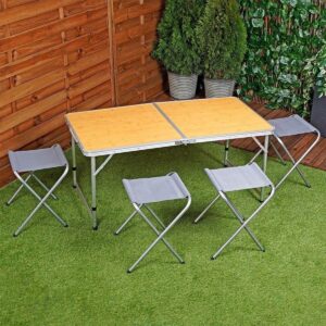 Szukasz lekkiego i poręcznego stolika z 4 krzesełkami na rozmaite wypady nad jezioro lub pod namiot? STOLIK TURYSTYCZNY 120x60x70/62/55CM I 4 KRZESEŁKA 33x27x35CM REDCLIFFS BAMBUS będzie idealny!