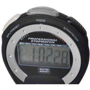 Wyposażony w duży wyświetlacz LCD wskazuje wszelkie niezbędne parametry tzn. czas z dokładnością do 1/100 sekundy, posiada kalendarz, tryb godzinowy 12/24,oraz alarm.