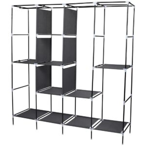 Szukasz lekkiej przenośnej szafy, aby powiesić i schować ubrania? GARDEROBA TEKSTYLNA 168X45X172 CM CIEMNOSZARA sprawi, że twoje rzeczy będą schludnie przechowywane i zawsze pod ręką w ładnej ozdobionej ornamentem szafie!