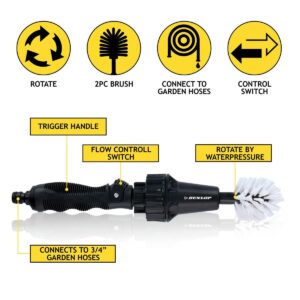 Szukasz odpowiedniego asortymentu, by szybko i sprawnie wyczyścić felgi i różne elementy samochodu lub roweru? SZCZOTKA DO MYCIA FELG OBROTOWA DUNLOP DŁ. 36,5CM podłączana do węża ogrodowego Ci w tym pomoże!