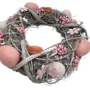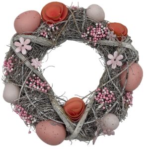 Chcesz ozdobić swoje cztery kąty pięknymi i oryginalnymi ozdobami kojarzącymi się z wiosną i z Wielkanocą? WIANEK STROIK DEKORACYJNY BIAŁO-RÓŻOWY ŚREDNICA 24CM będzie idealnym dodatkiem na tę okazję!