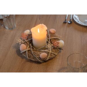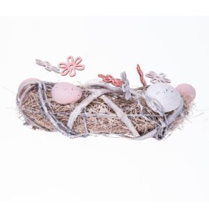 WIANEK STROIK DEKORACYJNY GREY ŚREDNICA 24 CM to urocza wielkanocna dekoracja. Pastelowe kolory wianka, biało – różowe drewniane kwiatki oraz naturalnych kolorów nakrapiane jajka, tworzą kompozycję o niepowtarzalnym charakterze. Wianek pięknie ozdobi Twój dom, a jego kolorystka podkreśli biel obrusu, urok świec, czy połysk sztućców. Wianek może również służyć do udekorowania Twojego miejsca pracy. WIANEK STROIK DEKORACYJNY GREY ŚREDNICA 24 CM został wykonany z dużą starannością, w modnej pastelowej kolorystyce. WIANEK STROIK DEKORACYJNY GREY ŚREDNICA 24 CM będzie się pięknie prezentować na Twoim wielkanocnym stole, na drzwiach, na kominku czy w oknie. Będzie dobrze wyglądać zarówno w nowoczesnym, jak i klasycznym wnętrzu. JEGO KONSTRUKCJA POZWALA NA DODAWANIE INNYCH OZDÓB Wianek stanowi część wielkanocnej kolekcji SASKA EASTER, w której na pewno znajdziesz jeszcze coś uroczego do udekorowania swojego domu!