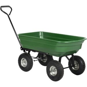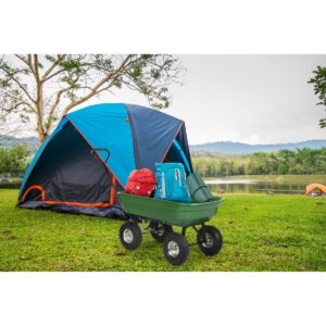 Wózek charakteryzuje się stabilną konstrukcją, co zapewnia bezpieczne przenoszenie i wywóz ciężkich ładunków. Solidne pompowane koła i wytrzymała rama pozwalają na stabilną jazdę nawet po nierównym terenie.
