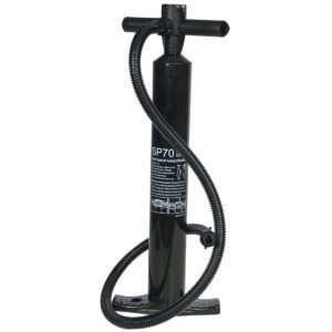 Dzięki dołączonemu do zestawu plecakowi do przechowywania deski nie będziesz mieć problemu z jej przetransportowaniem, zmieści się w każdym bagażniku, a specjalny duży uchwyt z rączką na spodzie deski ułatwi jej przenoszenie. Natomiast dzięki ręcznej pompce wysokociśnieniowej ze wskaźnikiem ciśnienia nie będziesz mieć większych problemów z napompowaniem deski SUP, a niezbędny zestaw naprawczy pozwoli naprawić jej ewentualne zniszczenia. Deska ma 6 stalowych kółek umieszczonych po bokach, co da Ci możliwość unieruchomienia jej na wodzie przywiązując do np.: pomostu. Specjalne grube gumy pozwolą na wsunięcie pod nie butelki z wodą, ręcznika czy małego plecaka. W naszej ofercie znajdą Państwo również linkę zabezpieczająca, dzięki której po zamocowaniu na nodze deska nie odpłynie samodzielnie w dal po upadku do wody.